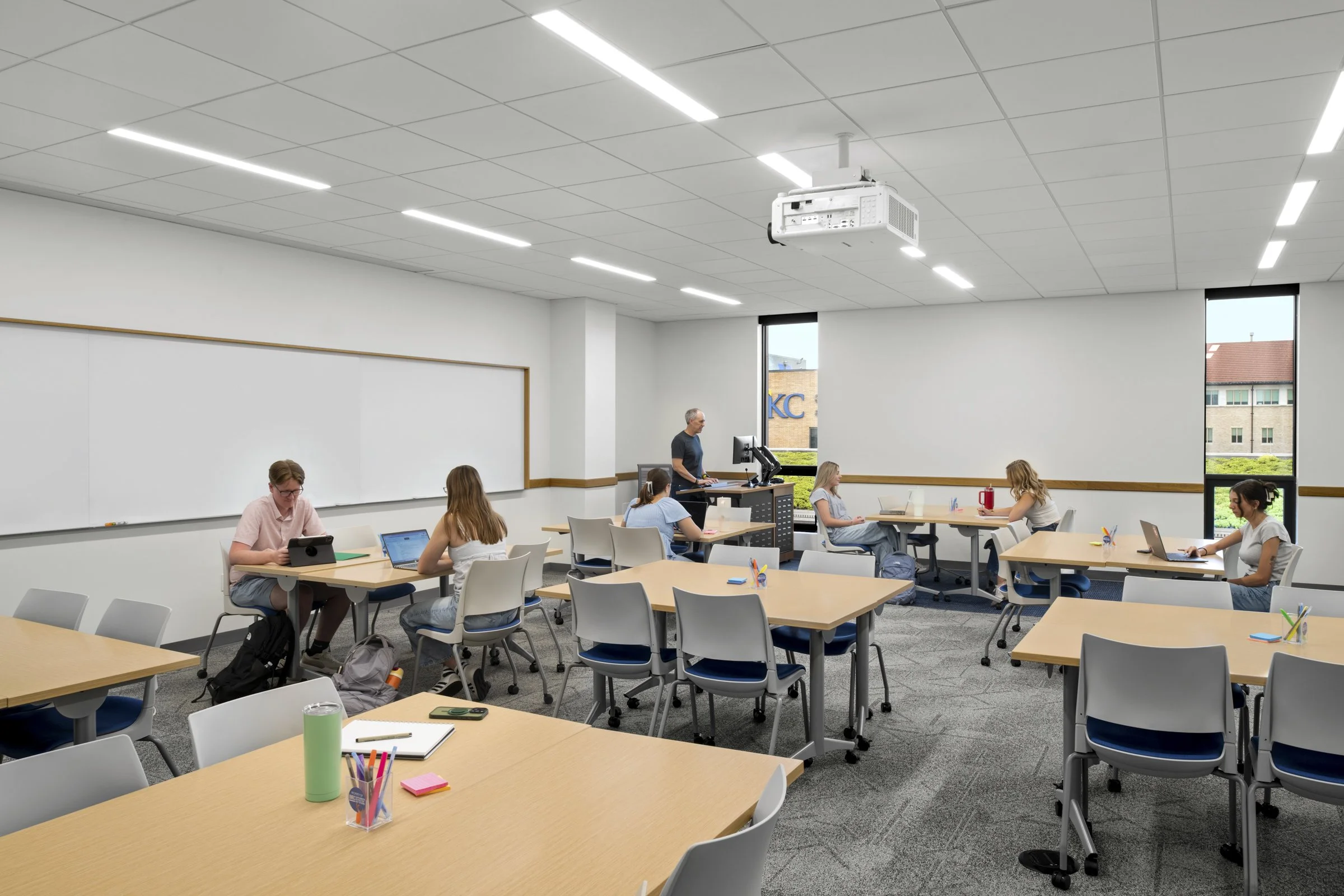 In recent years, the University of Missouri-Kansas City has welcomed its largest freshman classes in school history. To accommodate a growing enrollment and higher expectations for student success, UMKC has implemented several initiatives, such as First Gen Roos, Culture of Care, and Roo Wellness, among others, to better foster student success. As these and other initiatives took hold, it became apparent that the existing facilities used for student success programming were insufficient. A renovation of the fourth floor of Miller Nichols Library was completed to support the following student success functions: Undergraduate Research, Escalators Program, Bloch Scholars and KC Scholars, Academic Support and Mentoring, Peer Academic Leaders, Men of Color Academy, and Shared/Common Spaces. These improvements aim to foster exploration, collaboration, innovation, and discovery, providing students with the resources and support needed to achieve their academic goals and reach their full potential.